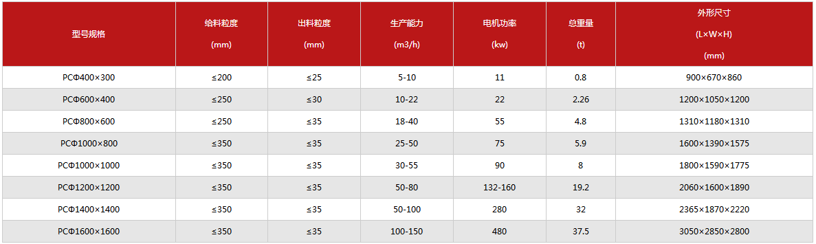 錘式破碎機也稱錘破機,是直接將大粒度為600-1800毫米的物料破碎至35毫米以下的段破碎機。該設備具有多種破碎方式,如沖擊、研磨、剪切、打擊作用等,用戶可根據生產要求及物料的性質選擇合理的破碎方式。具體錘式破碎機規格型號如下:
